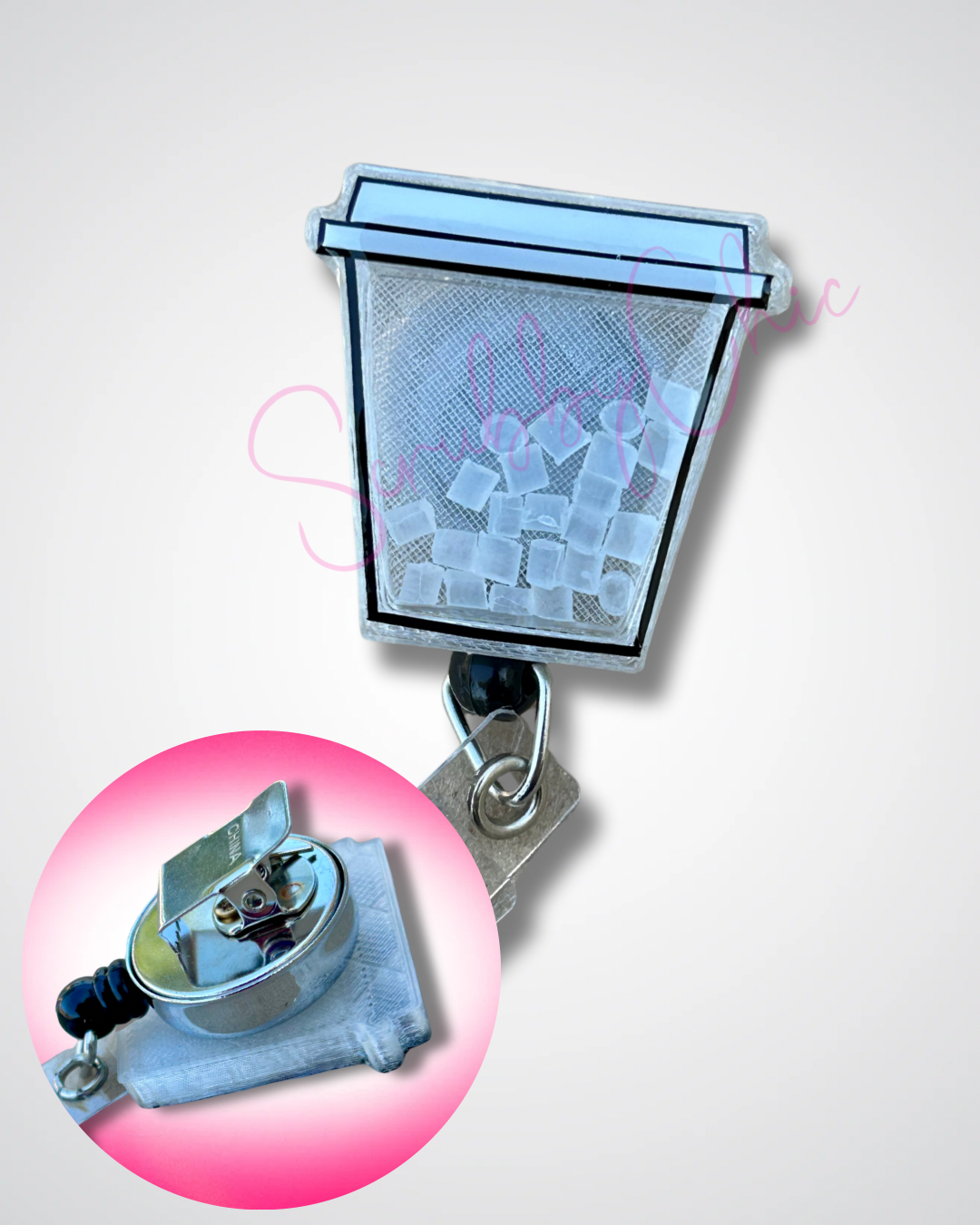 Badge Reel - White cup Iced Coffee (Minor defect)