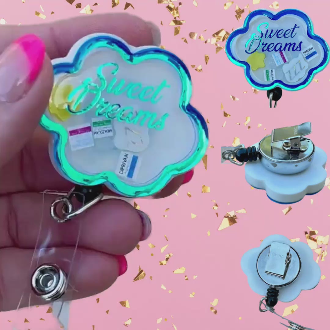 The Sweet Dreams Heavy Duty Badge Reel features a soft cloud filled with all the sleepy essentials: a glowing star, floating ZZZs, and tiny bottles of anesthesia meds. Designed for CRNAs, anesthesia techs, and sleepy-shift veterans, this retractable badge reel is equal parts cute and clever. Durable enough for OR life and lighthearted enough to make your coworkers smile.
