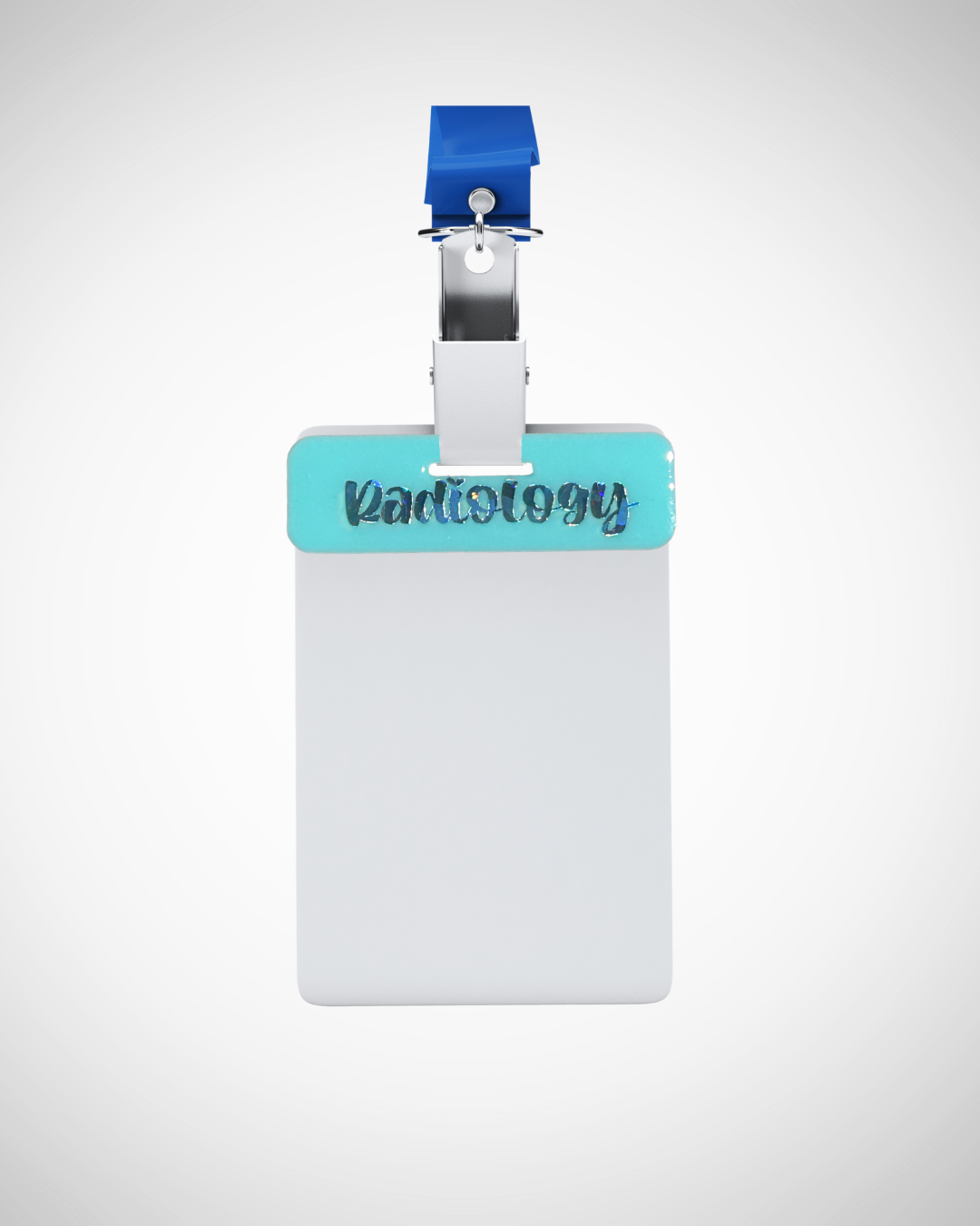 Add a little extra sparkle to your scrubs with our radiology Badge Topper! Featuring eye-catching holographic lettering, this badge accessory shines and shifts color with every move you make. Lightweight, durable, and designed to easily slide onto your ID badge, it’s the perfect way to showcase your specialty with style. Whether you’re in the OR or on the go, this badge topper brings a pop of personality to your everyday uniform.