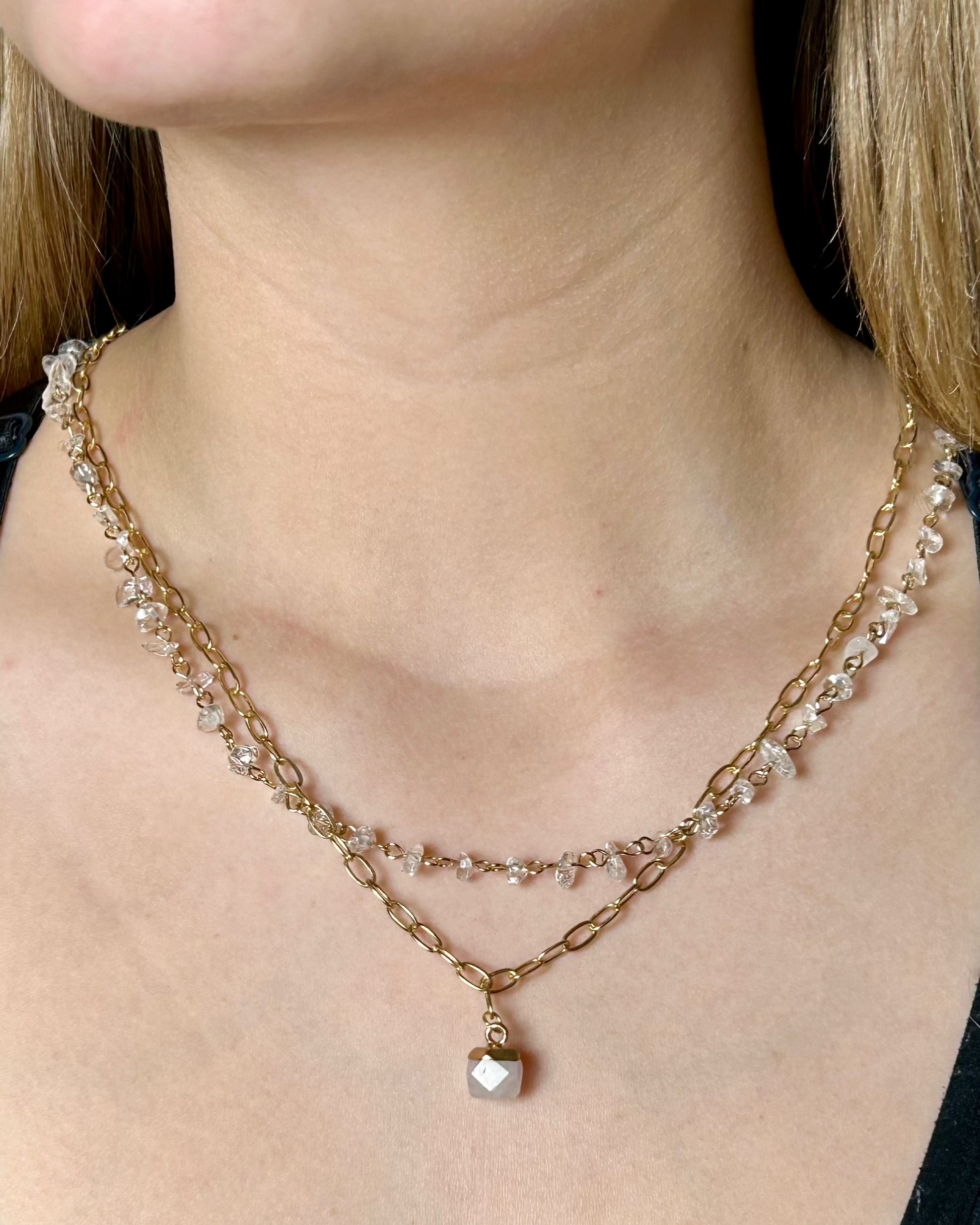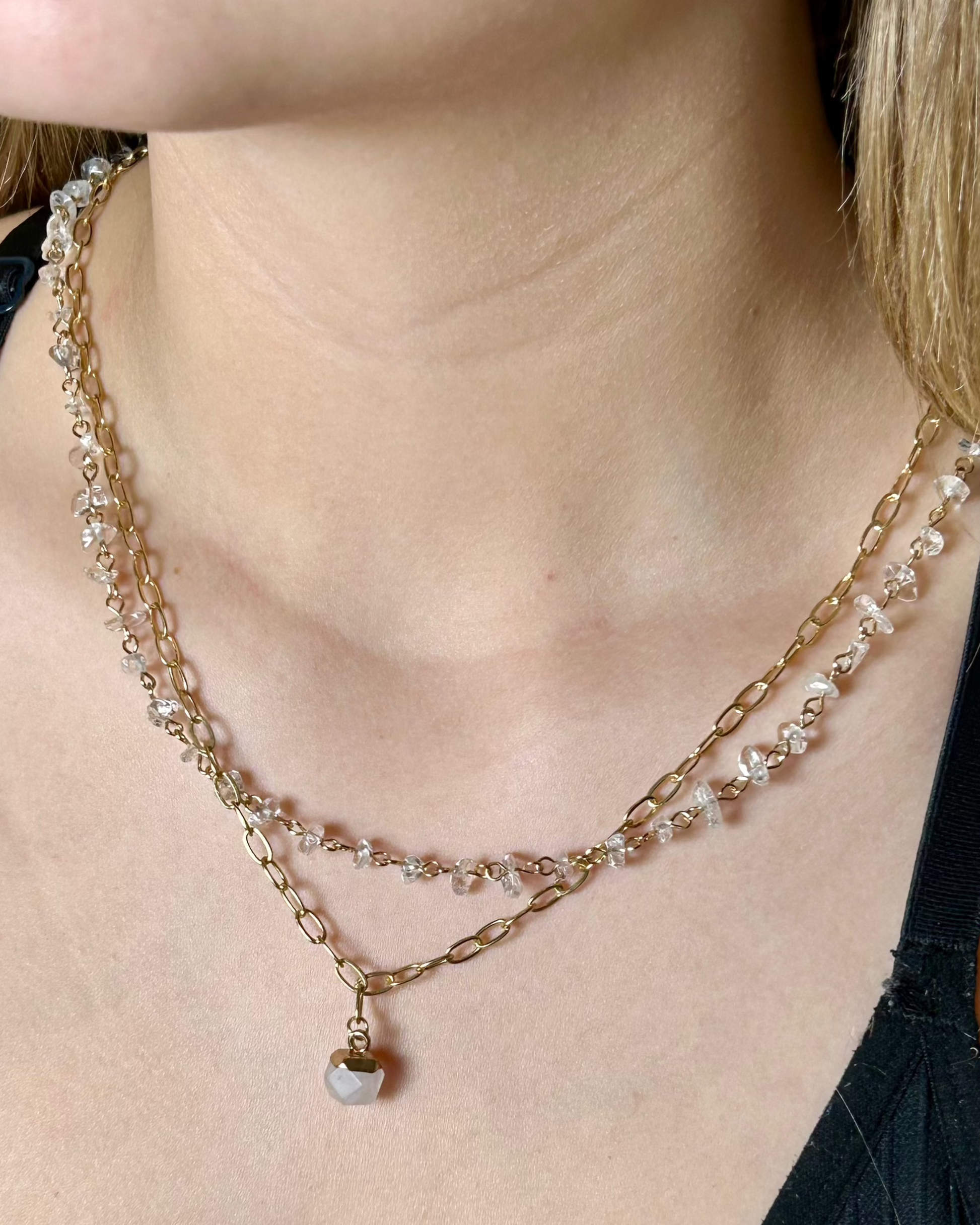 Double-layer necklace featuring a minimalist chain paired with a clear quartz pendant—perfect for adding layered elegance and natural sparkle to any look.