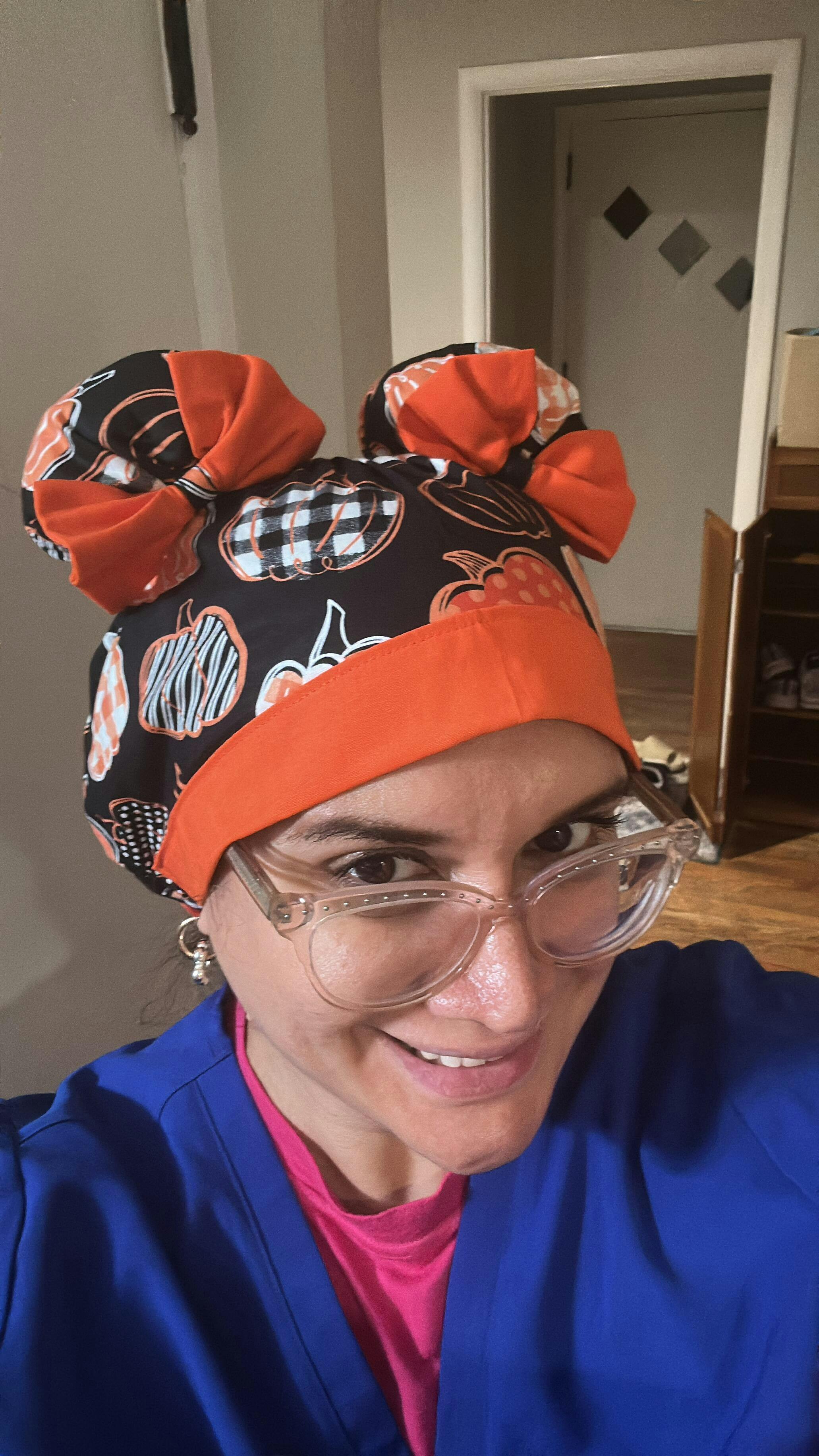 Hey Pumpkin ScruBunz – Featuring Autumn Vibes Scrub Cap for Nurses with Fall Colored Pumpkin Doodles