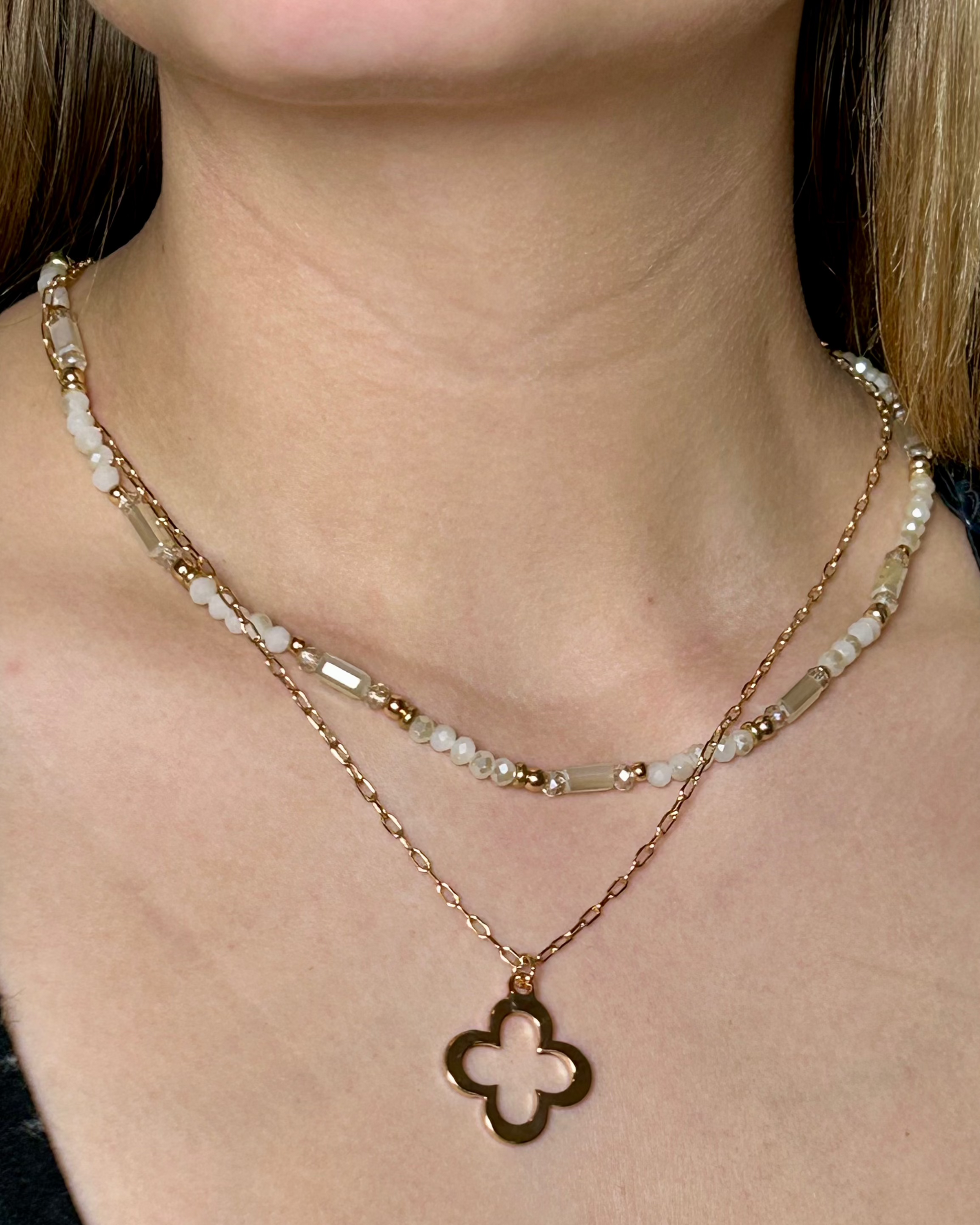 Layered Clover Pendant Necklace (gold toned & white pearlescent)