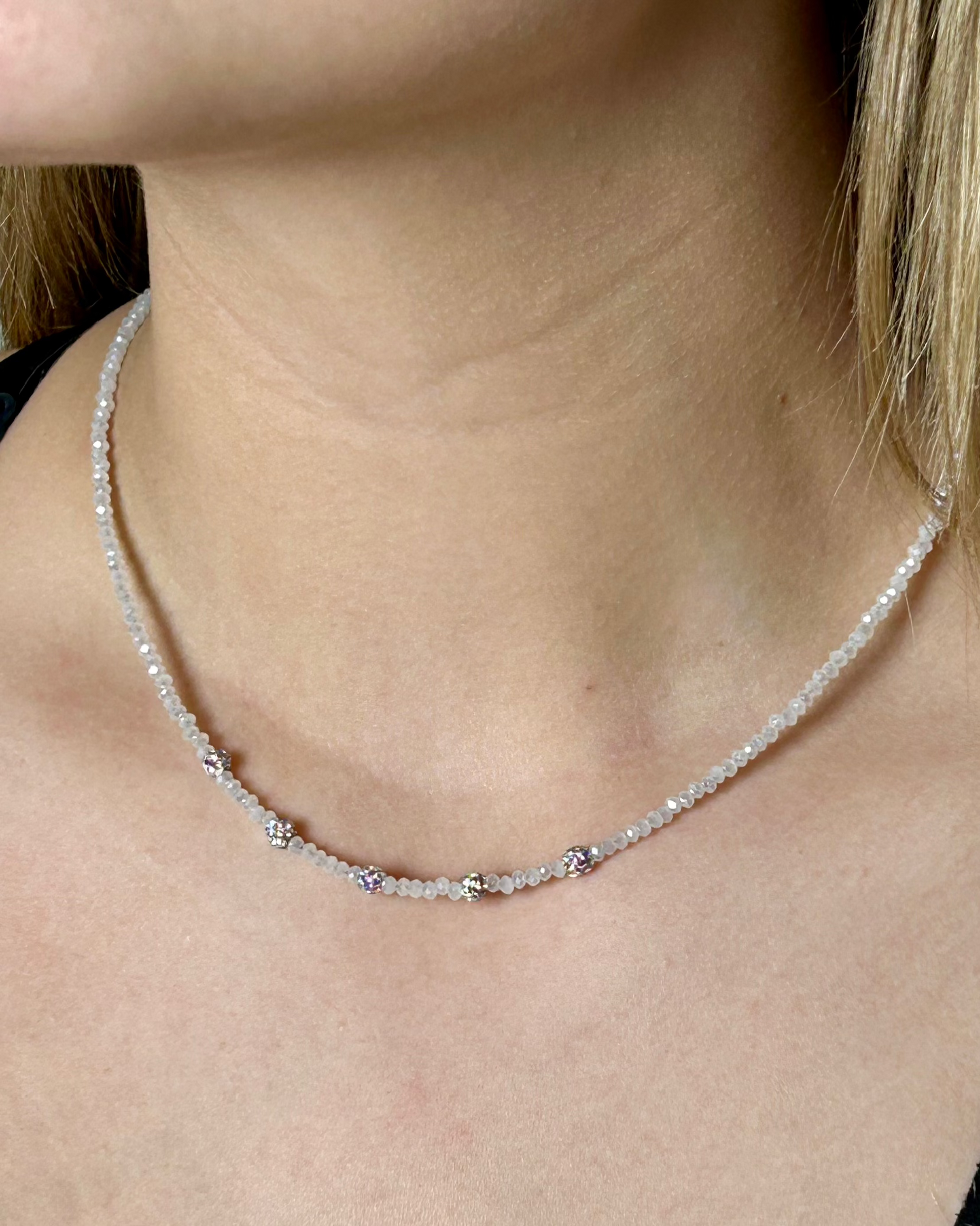Delicate charm necklace featuring subtle moonstone beads that embody yin’s positive energy—promoting well-being, balance, and a calming feminine touch.