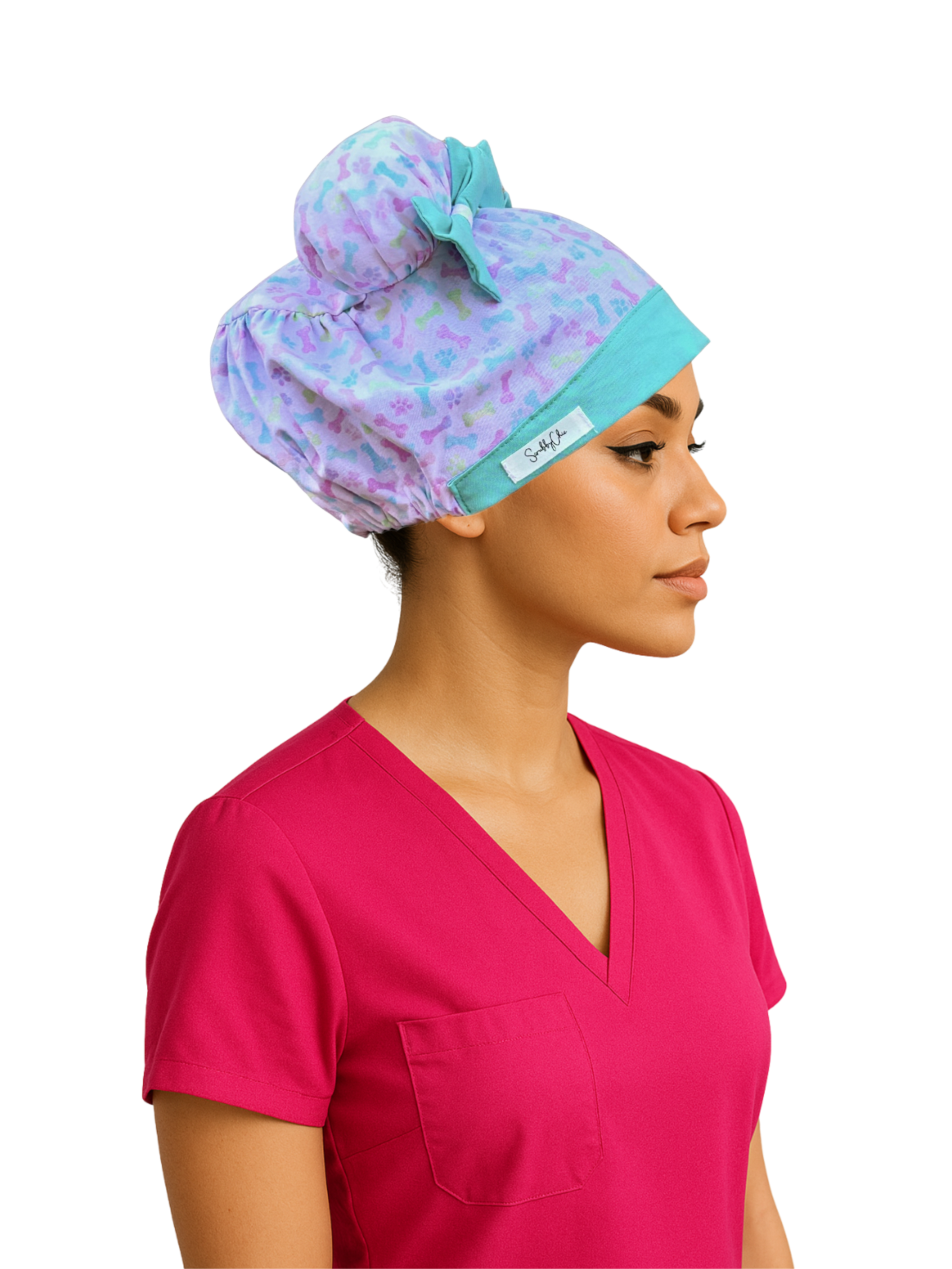 Paw Prints & Pastels ScruBunz – Cute Scrub Cap for Nurses with Colorful Puppy Paws